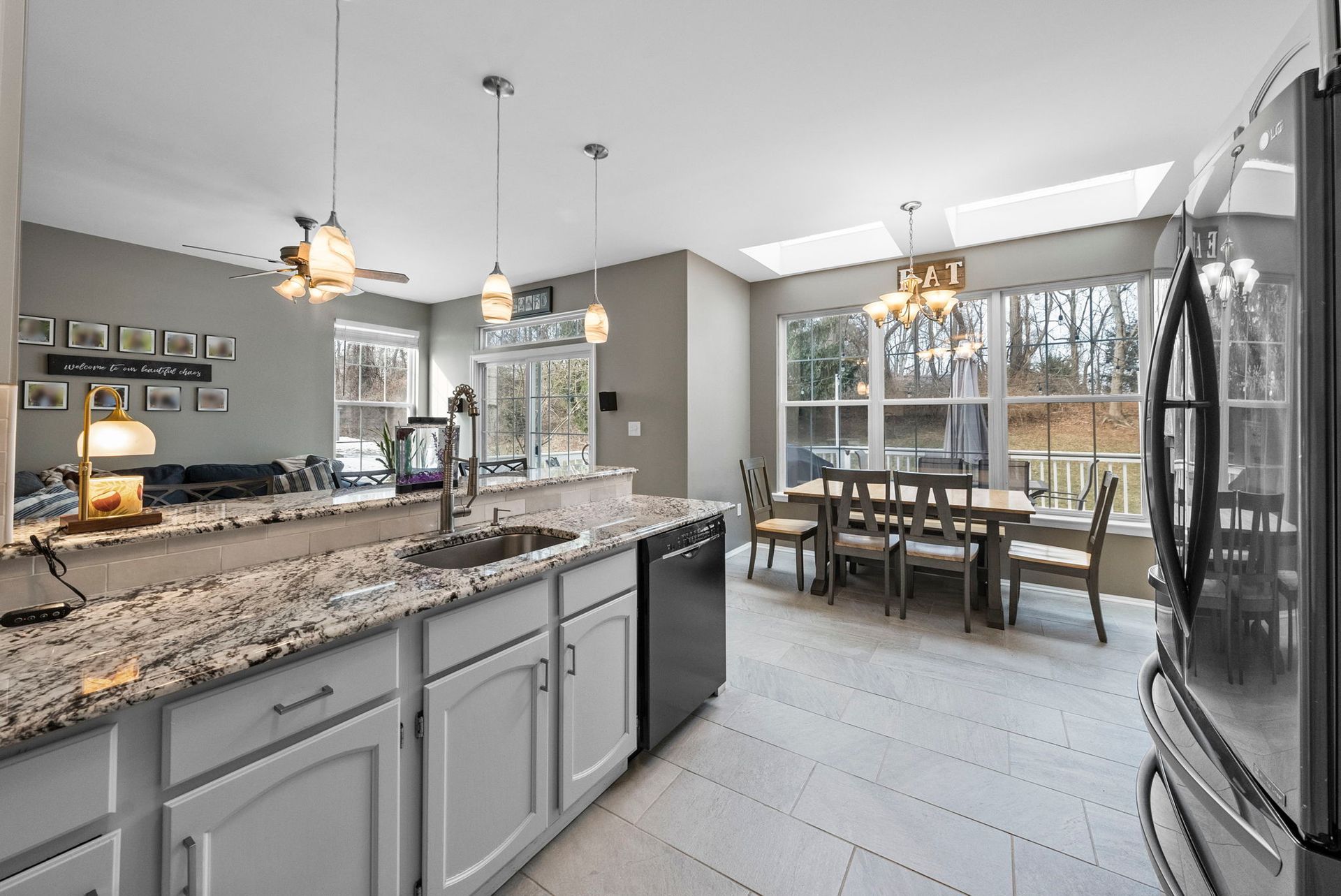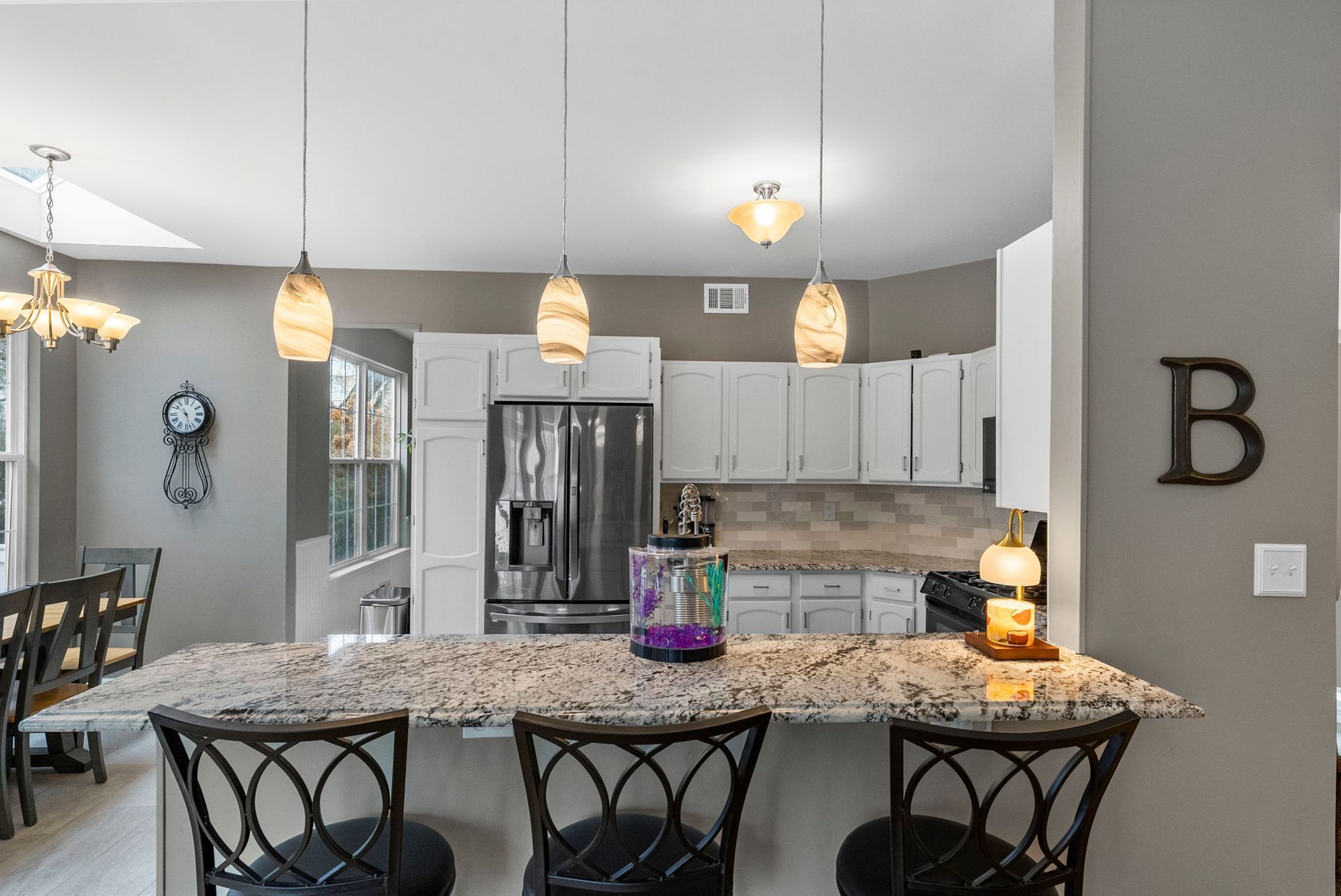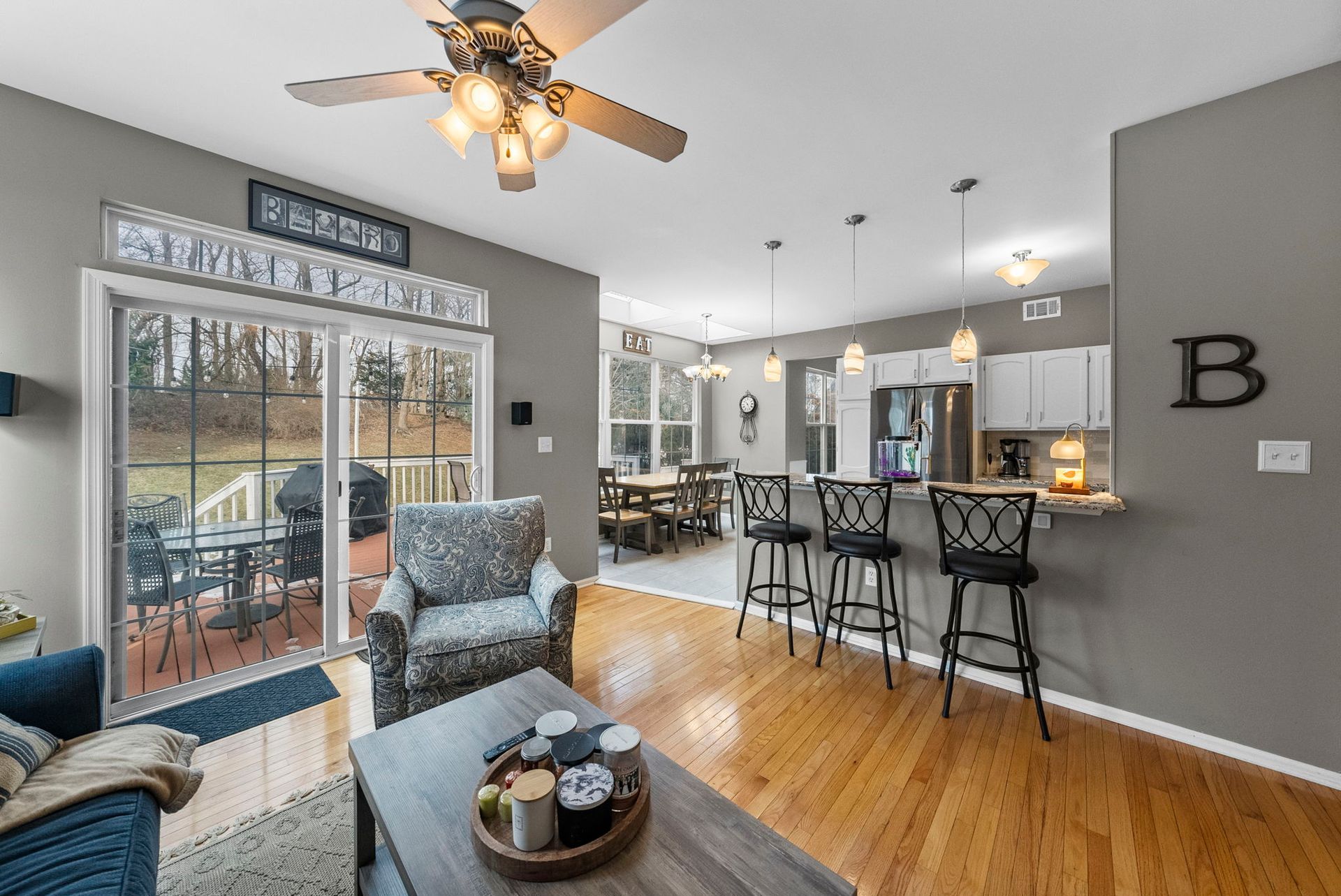 Inside, you'll find a thoughtfully designed layout featuring a modern, updated kitchen with a breakfast counter that flows seamlessly into the adjacent family room, perfect for everyday living and entertaining. A spacious living room and dining room combination provides additional flexibility for gatherings and formal occasions. All three bedrooms are located upstairs, along with a generously sized hallway closet offering valuable extra storage. The home also features a full finished basement, ideal for a recreation room, home office, gym, or play space.