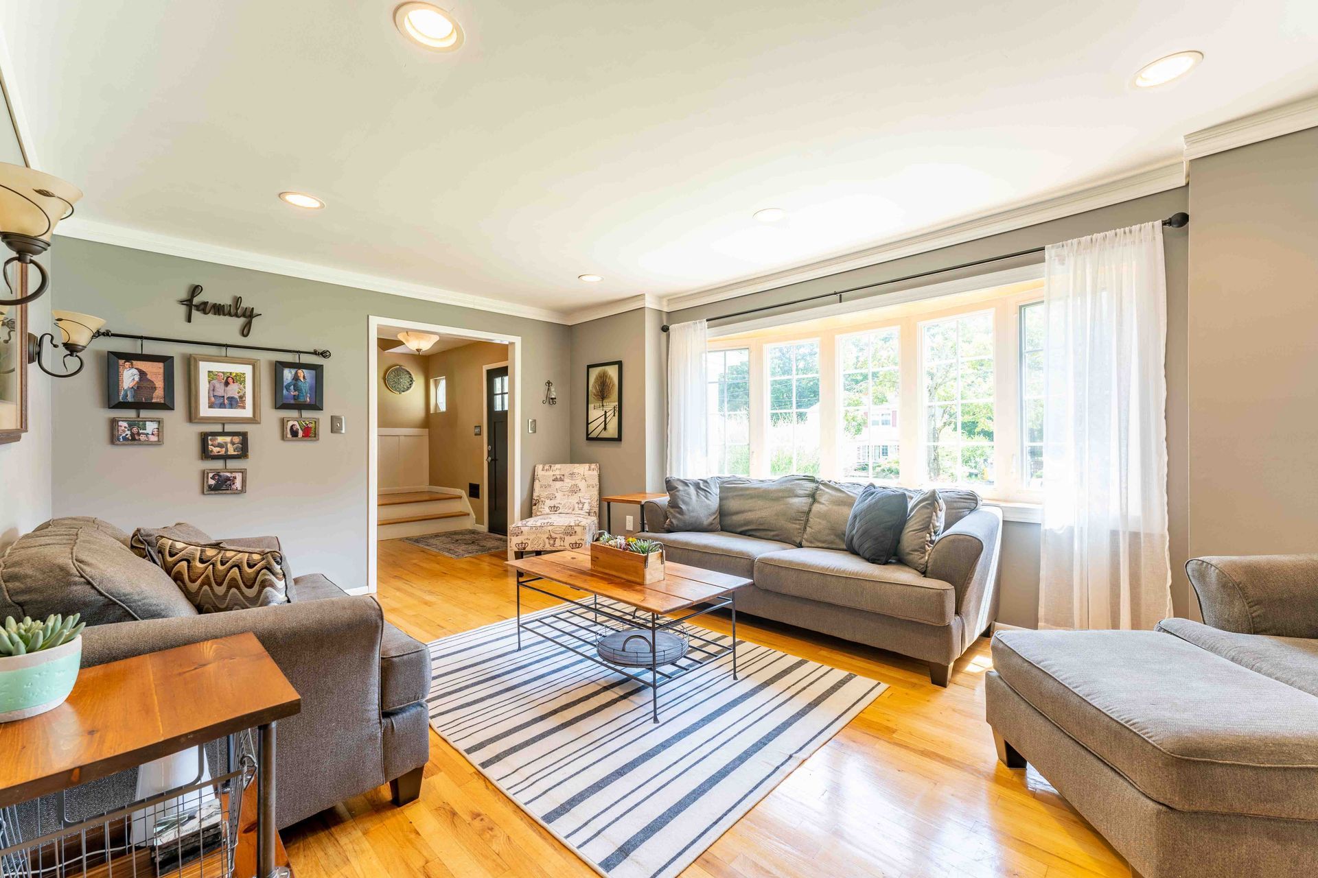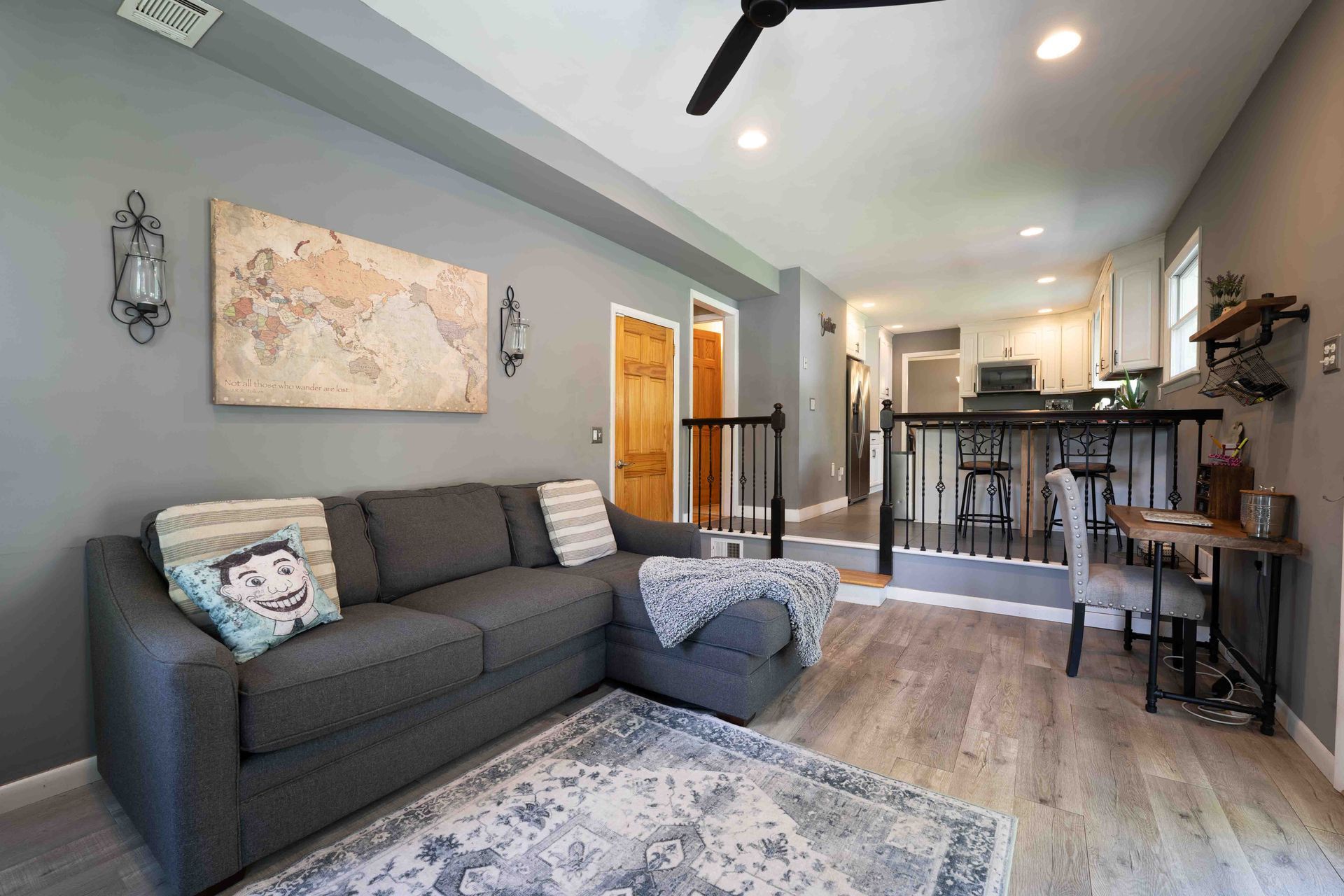 The sunken down family room off the kitchen adds a unique touch to the home's layout. This versatile space can be transformed into a cozy family gathering area, a playroom, or even a home office.