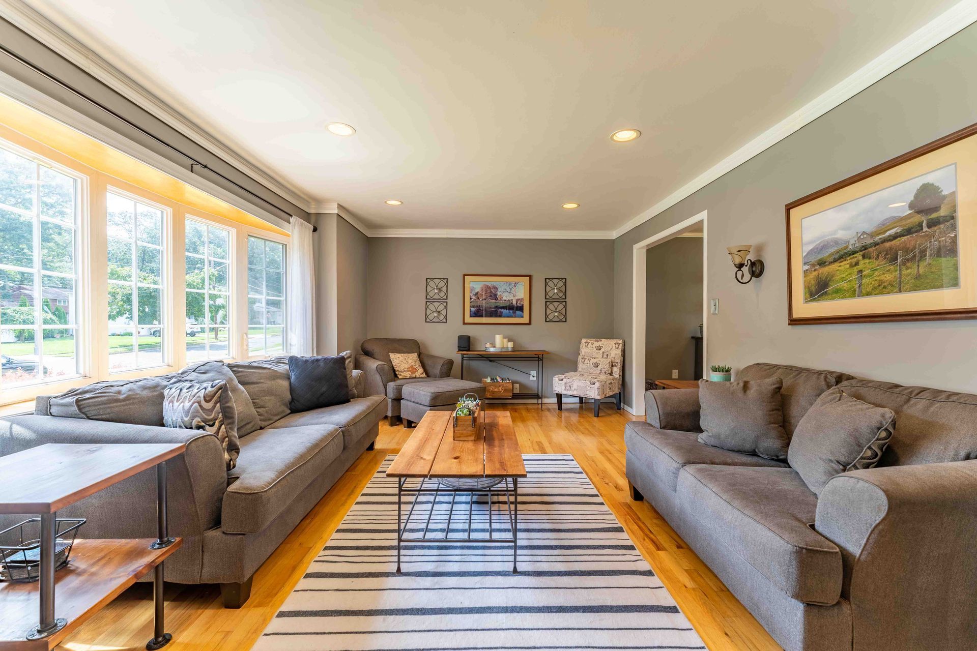 The layout of this home seamlessly connects the large living room to the dining room, creating an open flow that's perfect for both everyday living and entertaining.