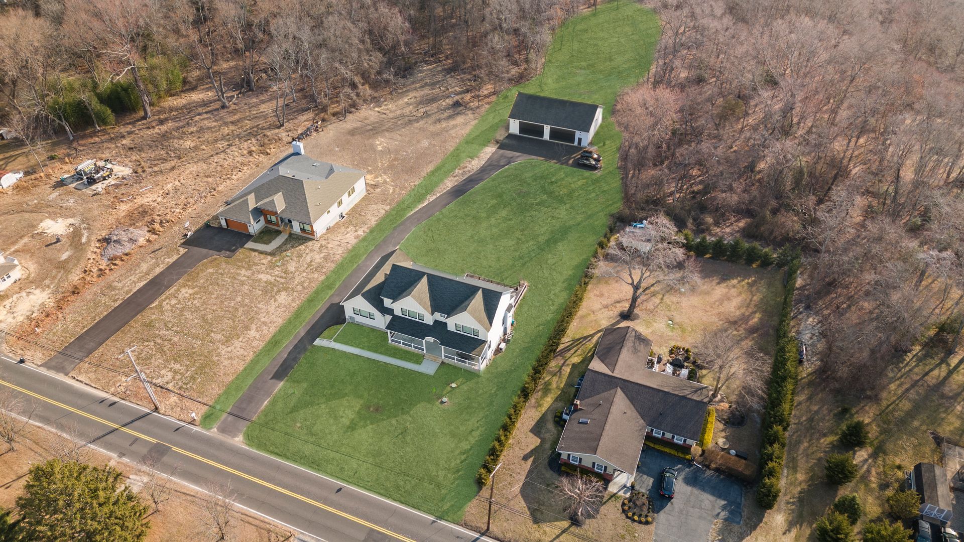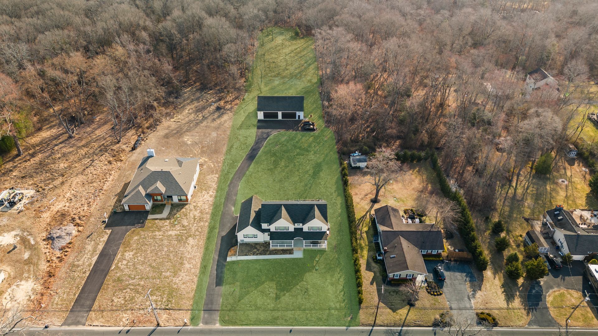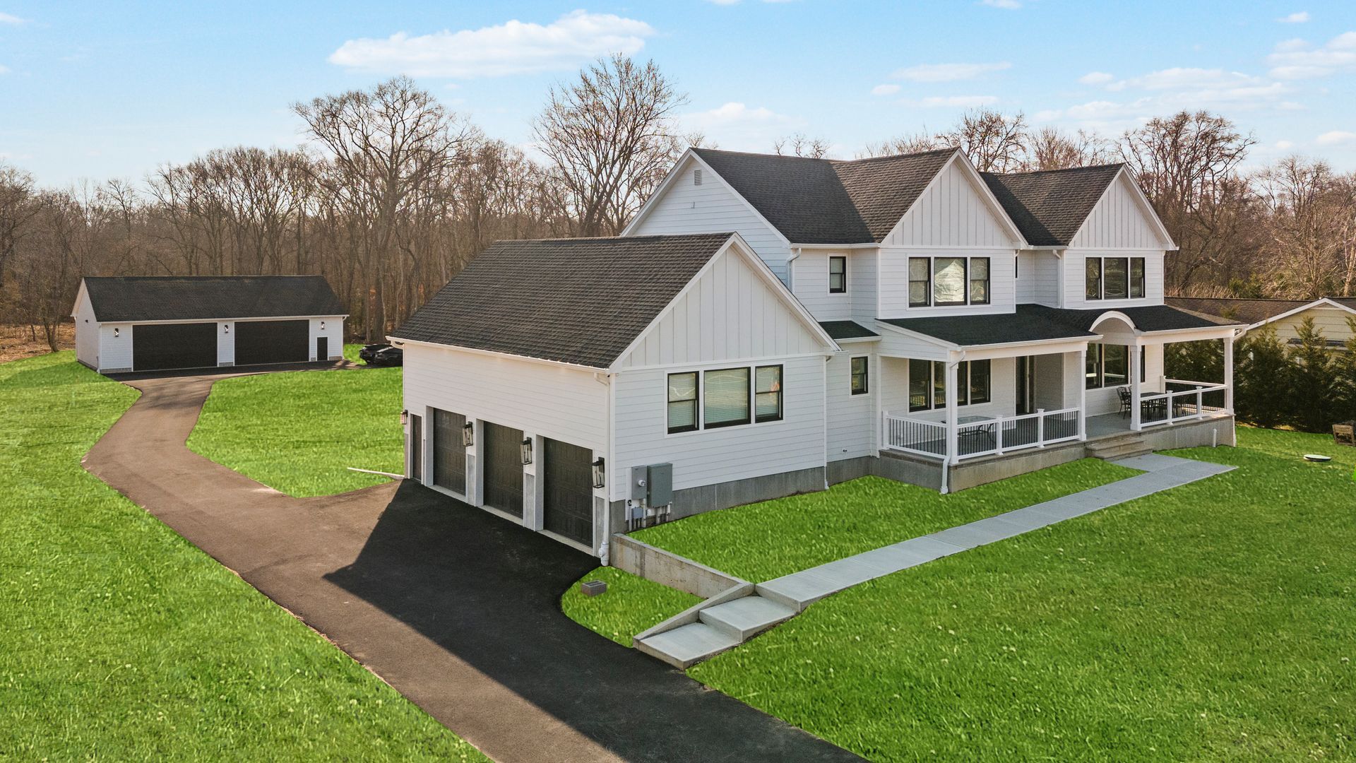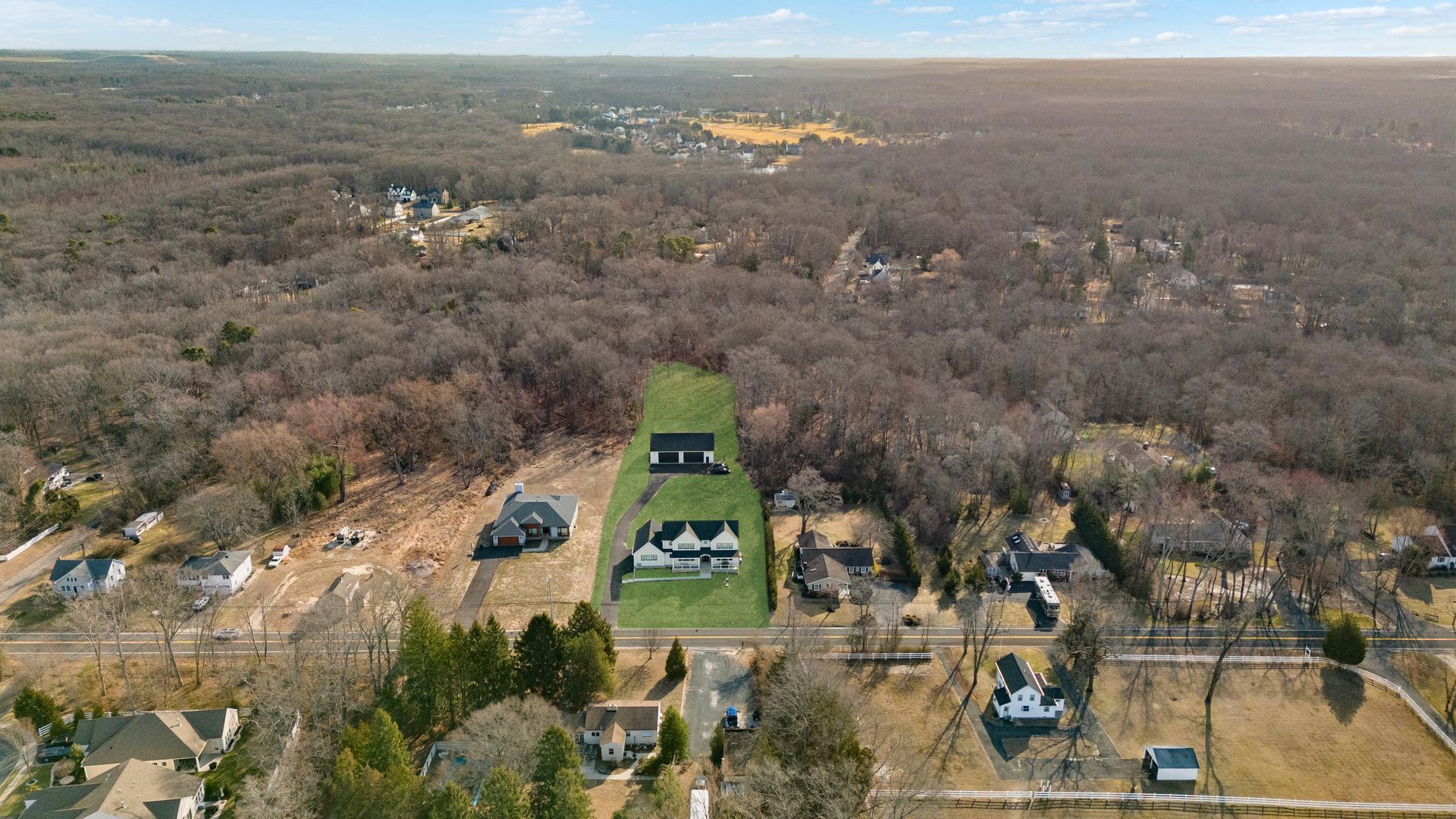Welcome to 273 Colts Neck Rd, a brand-new construction home offering modern luxury, thoughtful design, and incredible versatility. This meticulously crafted property boasts a spacious 2,400 sq. ft. detached garage with approx. 15-foot ceilings, heating, cooling, and electric—perfect for car enthusiasts, contractors, tradespeople, or anyone looking to create the ultimate adult cave, complete with a bar, golf simulator, or game room.