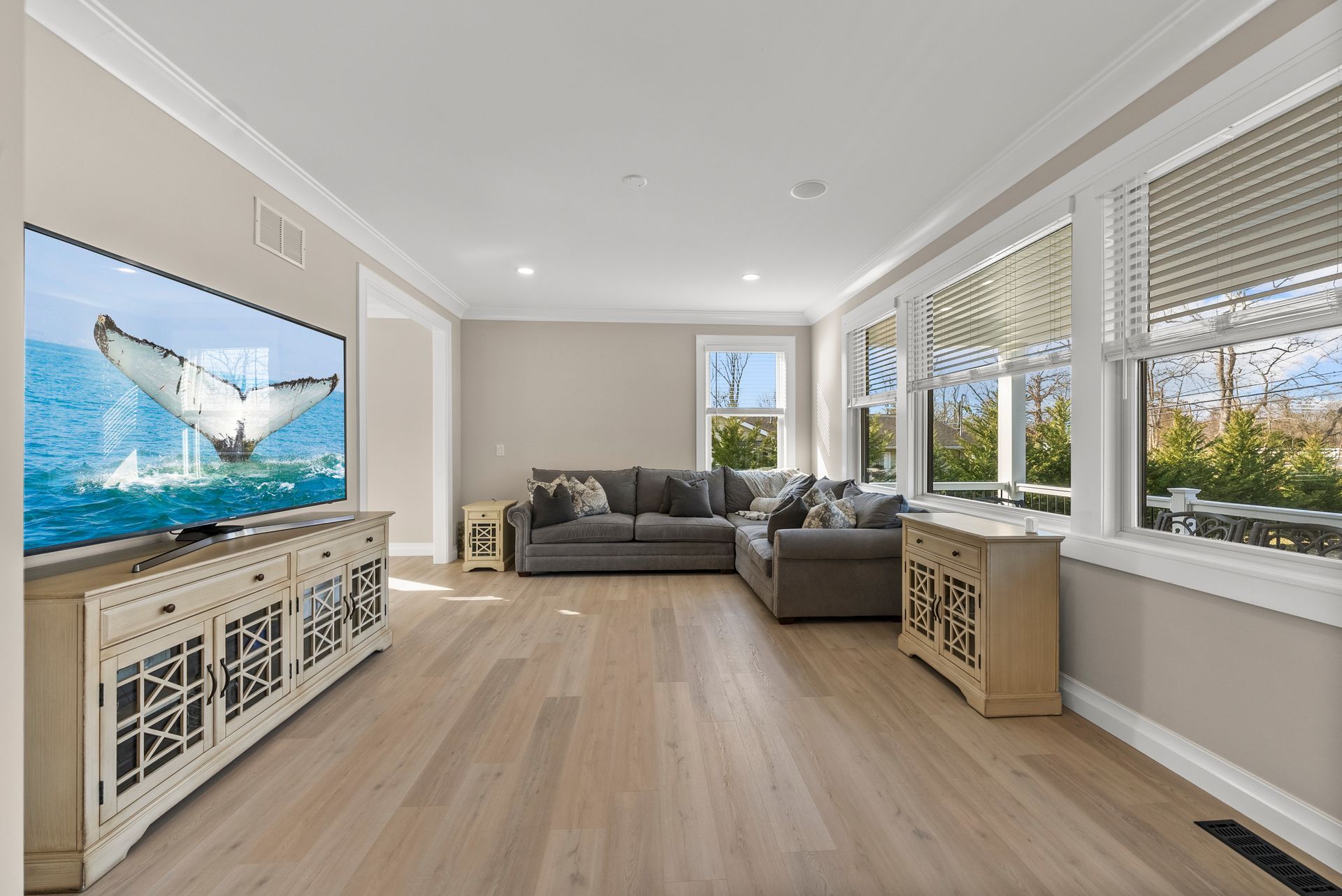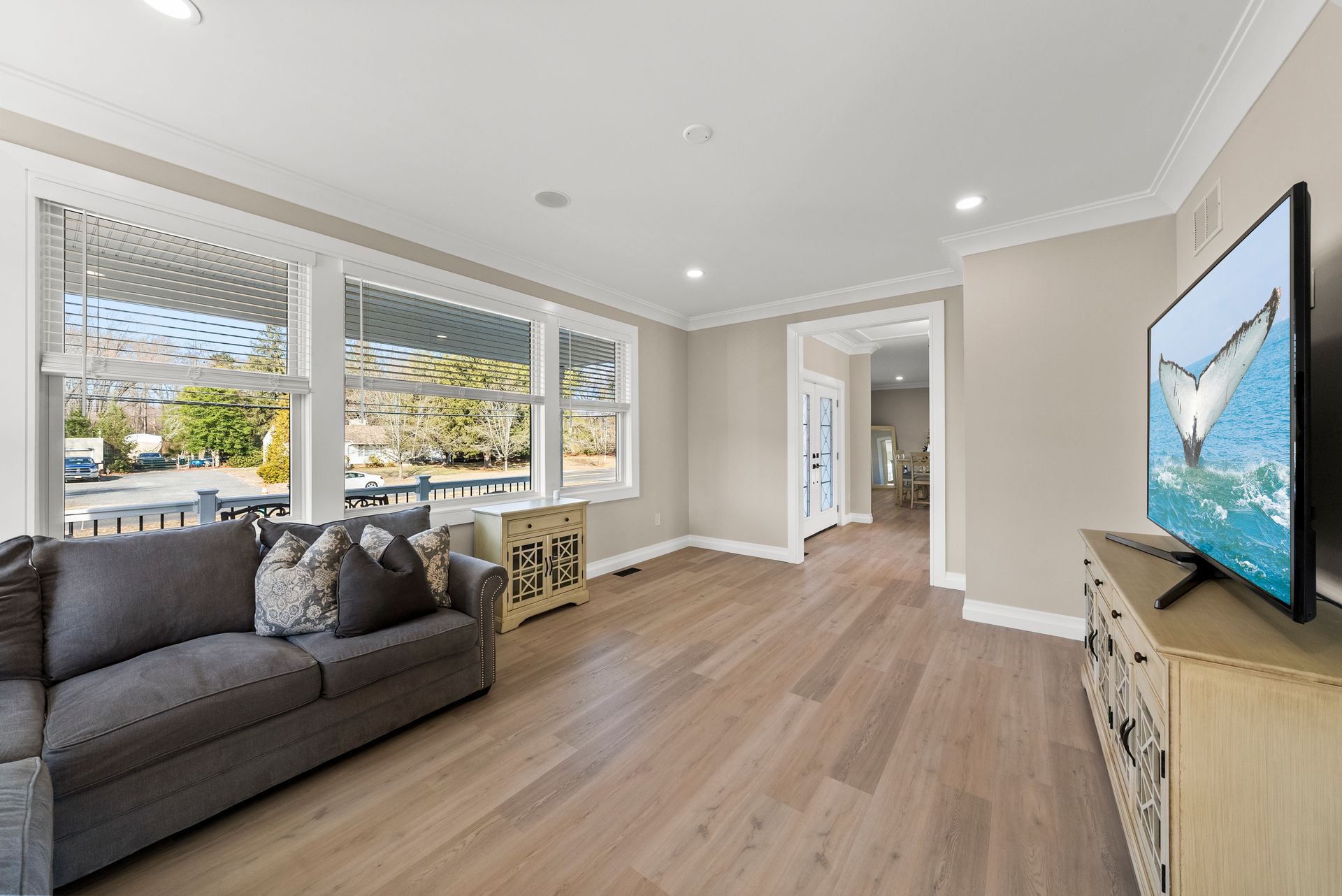 Outside, the covered front porch adds charm, while the large deck off the sliders offers the perfect space for entertaining. Plus, the seller has pre-installed electrical work for a future pool, making it easy to create your backyard oasis.