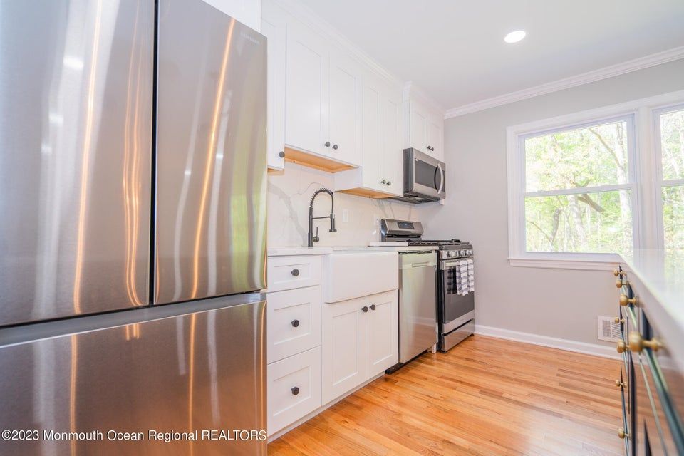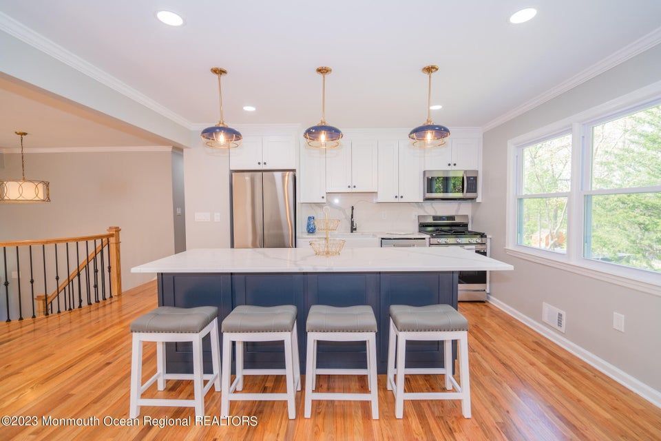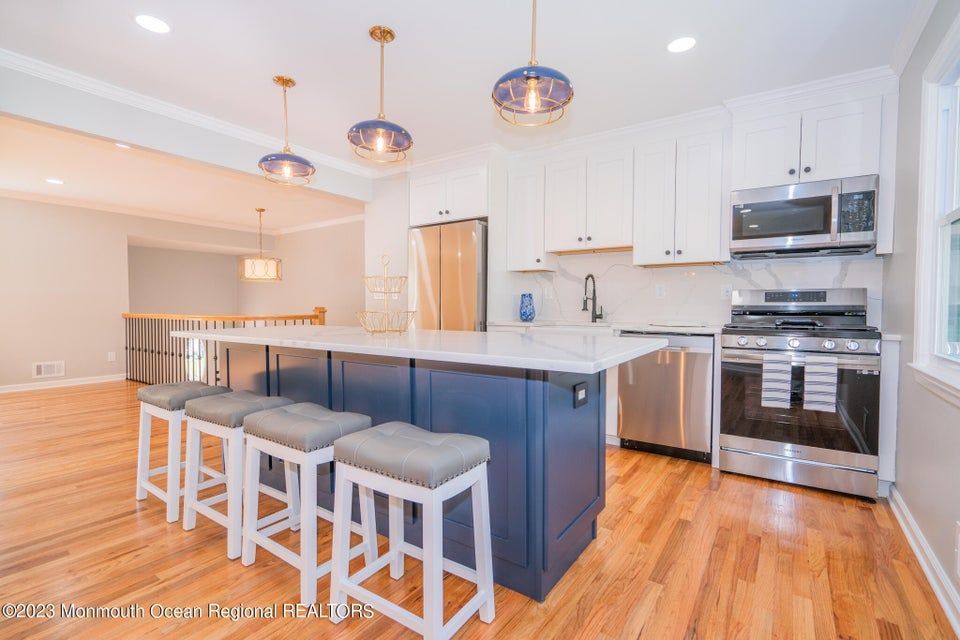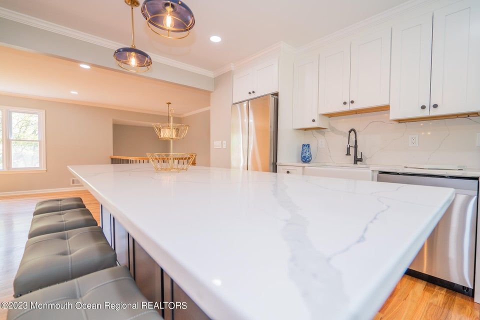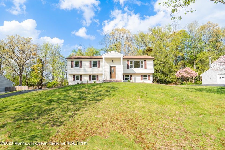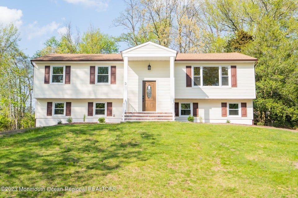Welcome to 3 Gettysburg Dr in Manalapan, NJ - your dream home awaits! This beautiful Bi-Level style home has been extensively updated with modern features and is move-in ready. As you enter the home, you'll notice the newly updated basement flooring that provides a welcoming and inviting feel. The kitchen is a chef's dream with stunning new countertops and appliances, making meal prep a breeze. Upstairs, the hardwood floors throughout the kitchen, family room, dining room, and bedrooms add a touch of elegance to the home. With plenty of closet space, you'll never run out of storage.