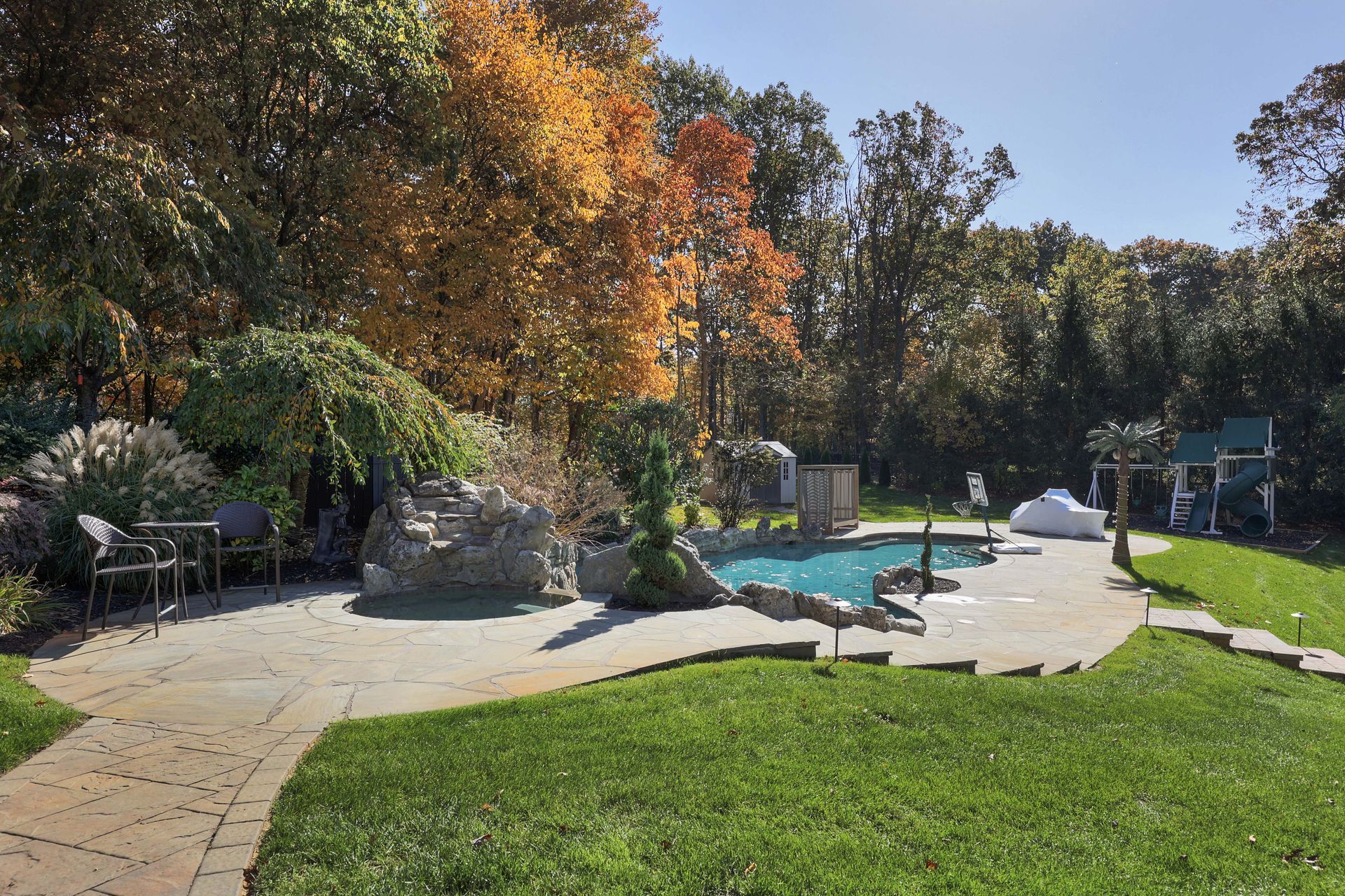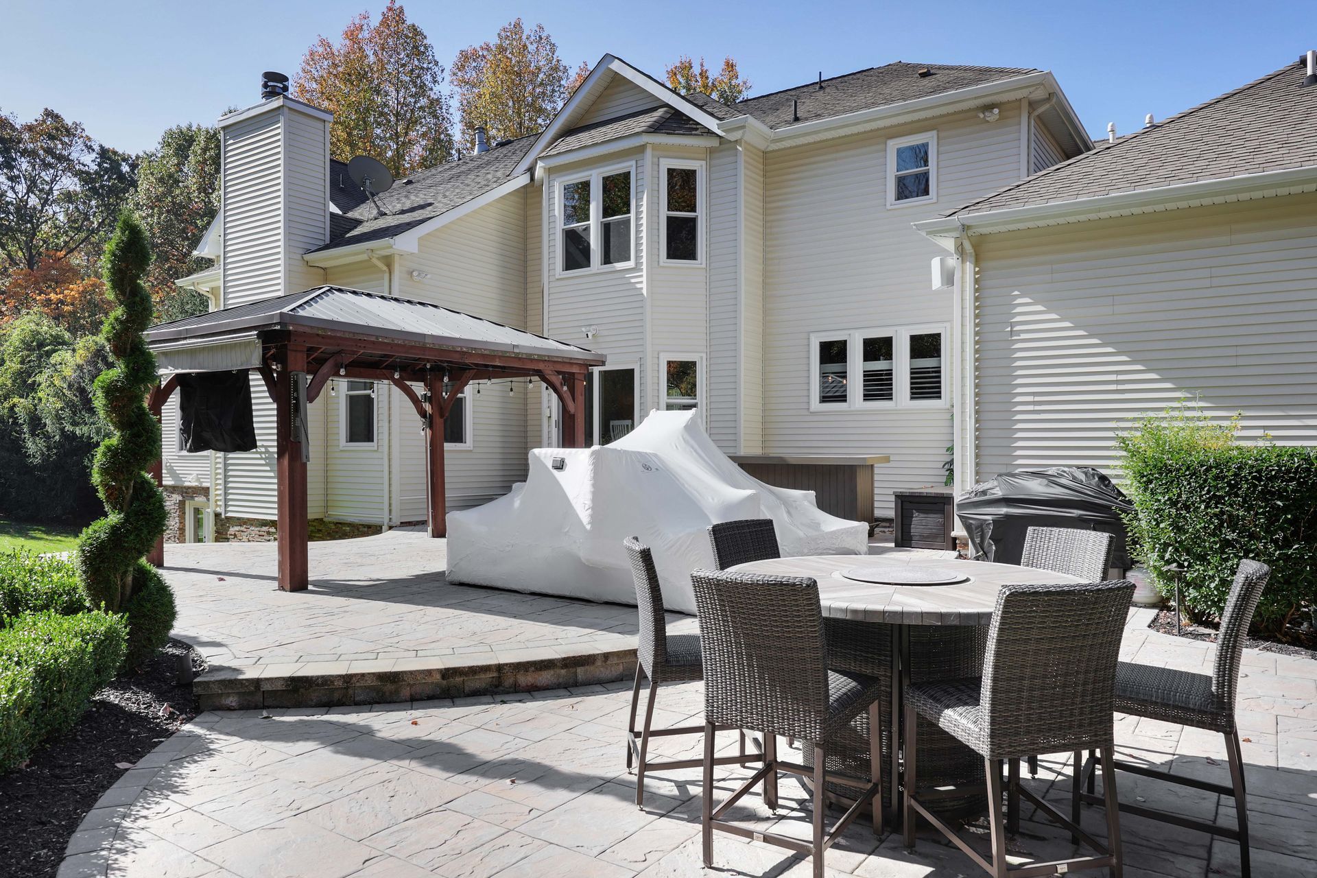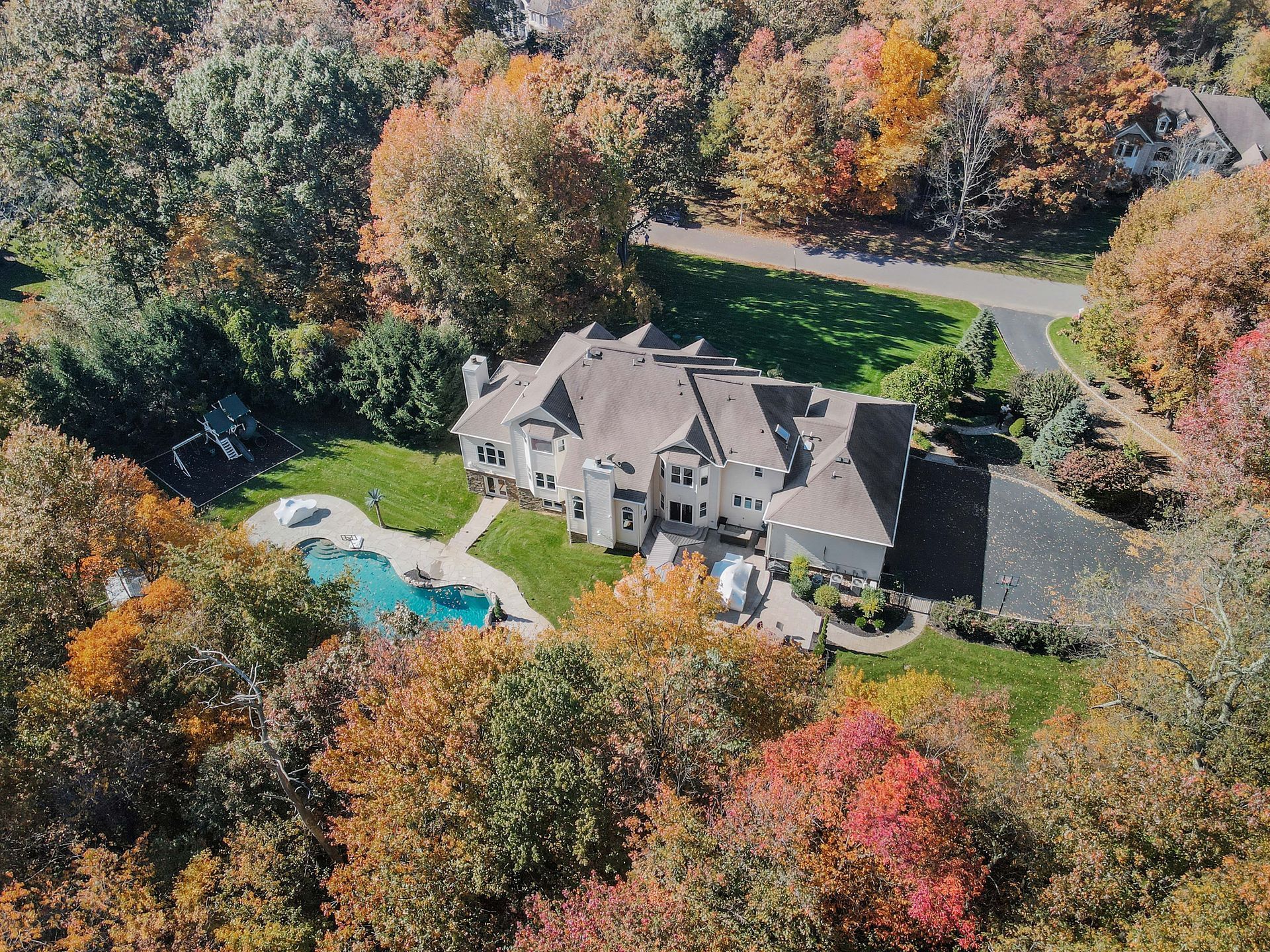 The kitchen offers top of the line appliances and all of today's modern finishes including quartz countertops, butler's pantry, a farm sink, dual ovens and a subzero refrigerator. The dining room is large and will easily accommodate large dinner parties. The sunken down family room once again offers high ceilings, a theme throughout this home, and another woodburning fireplace. The main level also includes a bonus room currently being used as a playroom & could serve as an office space as well. Off of your 4-Car Garage you have a large mudroom rounding out the first level of the home. Upstairs you will find more renovations including 3 renovated full bathrooms. The master bath includes a standalone tub and gorgeous shower. There is a princess suite with private bath while the 3rd & 4th bedroom are connected by a Jack and Jill bath. Your walkout basement has been fully finished with amazing & unique touches including hidden doors, a gym, a bedroom with full egress window, a full bathroom, a bar and large open space for family and guests to gather around. Through your walkout basement, you will find a backyard lover's dream with an inground pool complete with 2 waterfalls, paver patio, gazebo and shed. Rounding at this home, you can rest easy knowing the current homeowners have done a ton of upgrades including a New Septic, Windows, added a Split AC System to the Garage, Tankless Hot Water Heater, Dishwasher, Pool Cover, Pool Heater, Pool Filter, Washer/Dryer, Wifi Garage Door Openers, Wifi Sprinkler System and you will enjoy Sonos via the Basement, Gym & Outdoor Patio Area. All in all, the property sits on just under 2 acres of property and is set off the street offering loads of privacy. The next thing you need to do is book your appointment and make this dream home a dream come true!